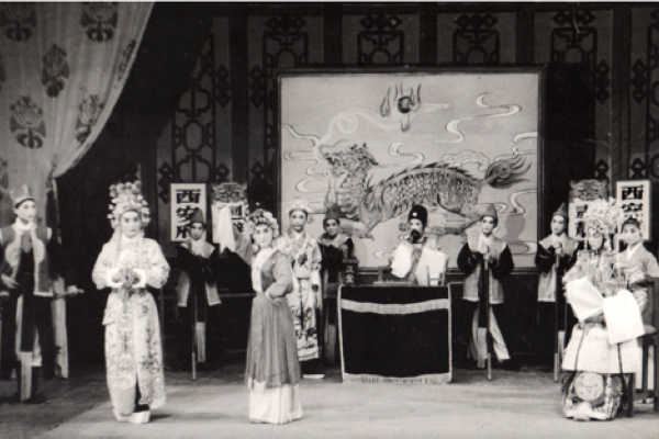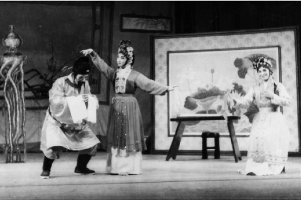 1965年演出的《补镬》剧照。右一是饰演李小聪的张祖基,左一是饰演刘兰英的陈小珠。