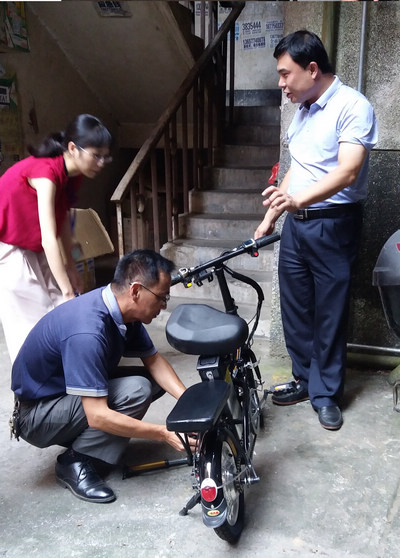 9月27日上午,致公党梧州市委会主委蔡光天、副主委黄继宗在慰问老党员的回程路上,遇到一位女士的自行车发生了故障。正当这位女士满头大汗、不知如何修理时,蔡光天、黄继宗立刻上前询问,并主动帮助她修理自行车,解除这位女士的燃眉之急。
