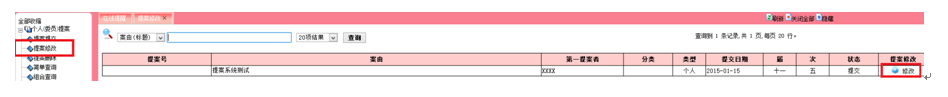 3.2提案修改 点击网站左边业务分类栏“提案修改”按钮。再点击右侧的“修改”进入提案修改界面。