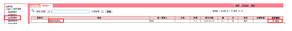 可修改的项目为:案由、相关情况、承办单位、提案日期、联名提案人、内容及重新上传提案全文附件等信息。再点击提交按钮完成提案修改。 3.3提案删除 点击网站左边业务分类栏“提案删除”按钮。再点击右侧的“删除”进入提案删除界面,出现对话框,选择“确定”删除提案。