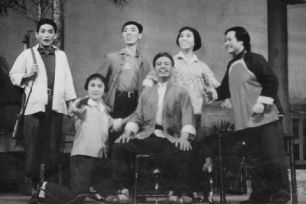 1961年演出的《迎春花》剧照。右一是陈小珠,右二是李仪,右三是何淑玲,左二是利飞,左三是张祖基,左四是雷绍龙,左五是李汉铭。