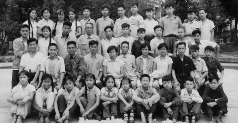 1964年在南宁,昆剧刘传衡老师(第二排右四)和粤剧班的学员合照。第一排右三为陈小珠。 hr