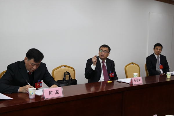 主席张学军、副主席何深、蓝明月参加中共界别分组讨论。