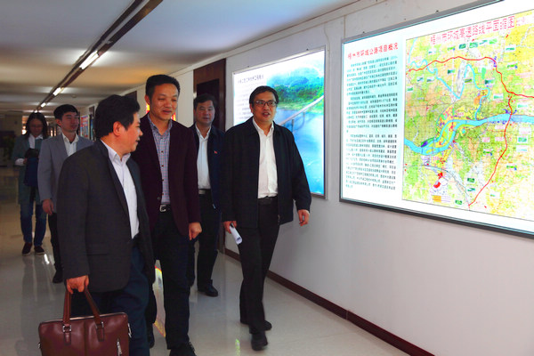 市政协主席张学军(右一)到市环城高速公路建设项目指挥部调研。 (黄能摄)