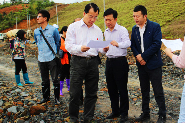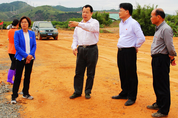 莫永东副主席在平浪防洪堤建设现场调研。 (胡彧摄)