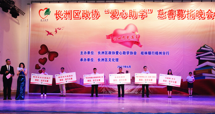 长洲区各爱心企业(单位)、个人踊跃捐款。(卢刚摄) 6月9日晚,由长洲区政协爱心助学协会、桂林银行梧州分行主办、长洲区文化馆承办的长洲区政协“爱心助学”慈善募捐晚会在市政府广场举行。该城区政协委员和工商联、区直单位、乡、镇(办事处)、社区、学生家长代表以及爱心企业和社会热心人士共400余人参加。长洲区政协主席、爱心助学协会第二届名誉会长左胜娴出席了活动。 晚会在《炫舞青春》开场舞中拉开序幕,电子屏幕向现场观众展示了长洲区政协爱心助学协会自2014年成立以来,开展“爱心助学”的光辉历程。晚会上,由长洲区政协、桂林银行梧州分行等相关单位的演员们以歌舞、小品、弹唱、古筝合奏等表演形式,将晚会推上了高潮。整场晚会贯穿着“爱”的主题,充分展现了社会各界爱心人士对贫困学子们互帮互助、热心公益、乐于奉献的精神。 在晚会现场开展的募捐助学活动中,广西忠海置业发展有限公司捐资5万元、梧州来泰松香树脂厂捐资3万元、长洲区政协、梧州市区农信社、华记钢铁公司、梧州广宇房地产综合开发有限公司、海骏达房地产开发有限公司各捐资2万元。在政协委员和爱心企业家们踊跃捐款的带动下,许多市民也纷纷通过现场扫描爱心助学协会微信二维码、现场捐赠等方式,为贫困学子献一份微薄之力。截至晚会结束,共收到社会各界爱心助学捐款33万余元,这笔款项将在今年秋季开学前发放给长州区的贫困学生。 长洲区政协爱心助学协会是一个旨在帮助长洲区贫困家庭高中生、大学生圆梦的公益性组织,成立3年多以来,已资助了68名贫困高中生,187名贫困大学生,320名特困小学生。 (张欢) |