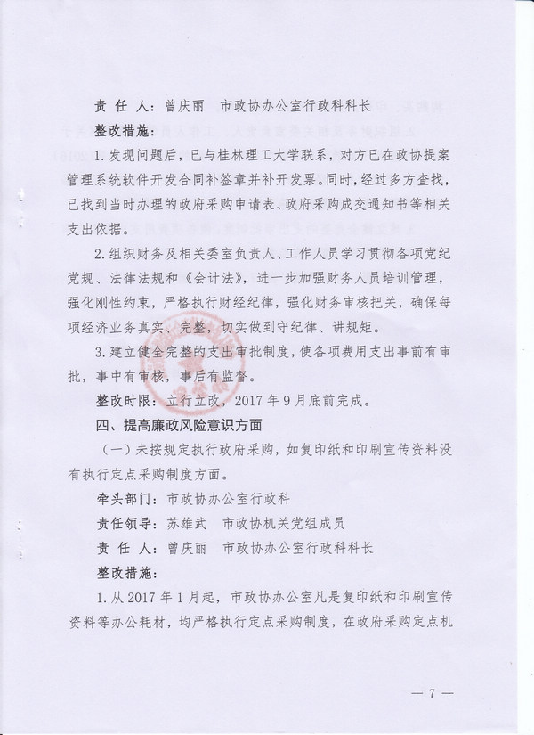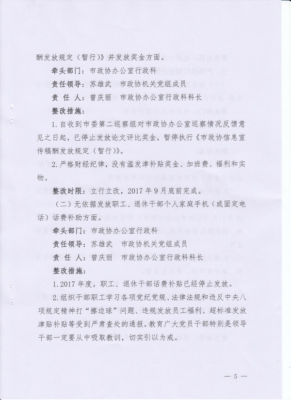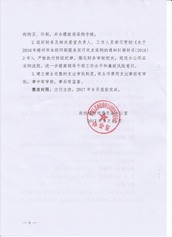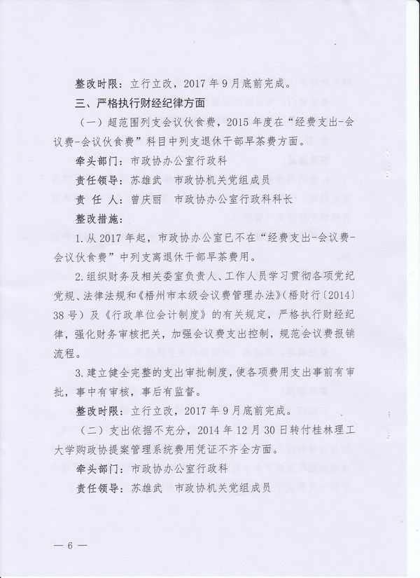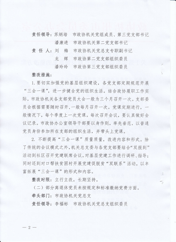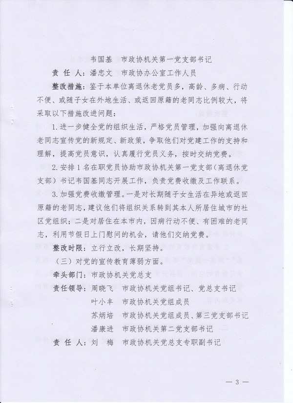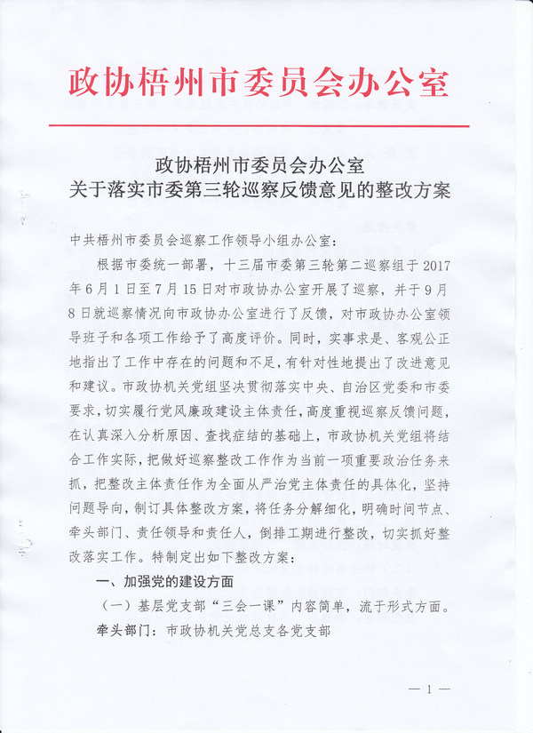 政协梧州市委员会办公室关于落实市委第三轮巡察反馈意见的整改方案