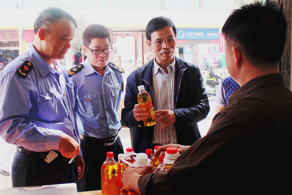 蓝明月(左三)带队到农贸市场察看食用油卫生情况 11月1日,市政协副主席蓝明月率督查视察团到岑溪市开展食品安全调研督查,现场视察了学校食堂、食品加工作坊、农贸市场等重点场所,并组织相关部门领导、政协委员座谈交流。蓝明月指出,各级各部门要高度重视食品安全问题,切实履行职责,强化部门联动建立长效机制,做细做实食品安全监管工作。要加强食品安全教育引导和宣传工作,增强企业业主和广大人民群众的食品安全意识,动员社会力量齐抓共管,群防群治。 (经科委) |